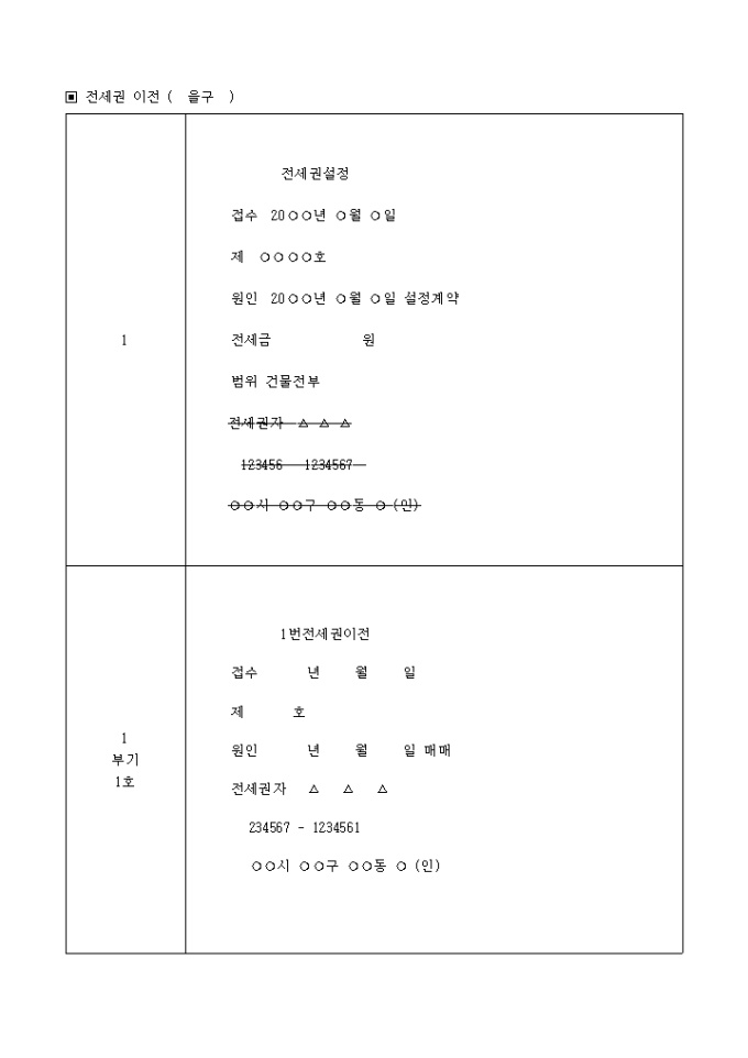 전세권에 관한 등기(전세권 이전)