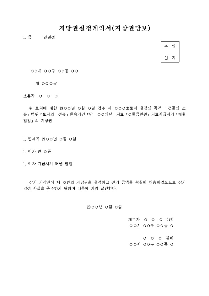 9,000원/월지상권 담보계약서 예제 입니다.