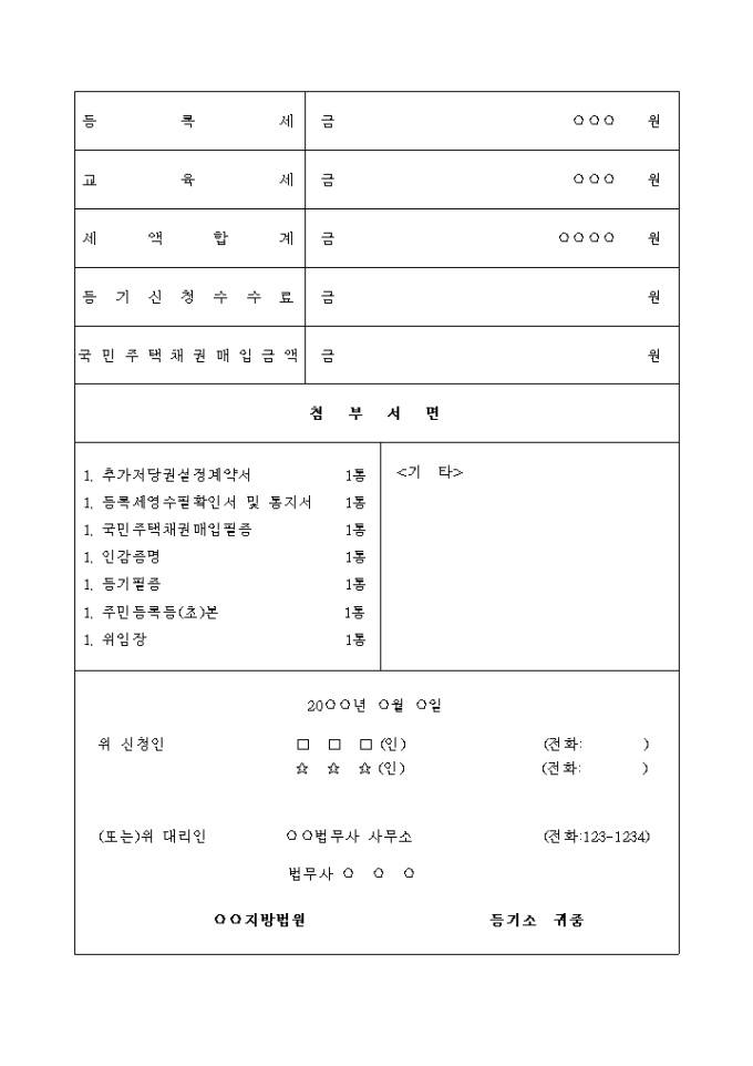 등기원인과 그 연월일 : 20○○년 ○월 ○일 추가저당권설정계약