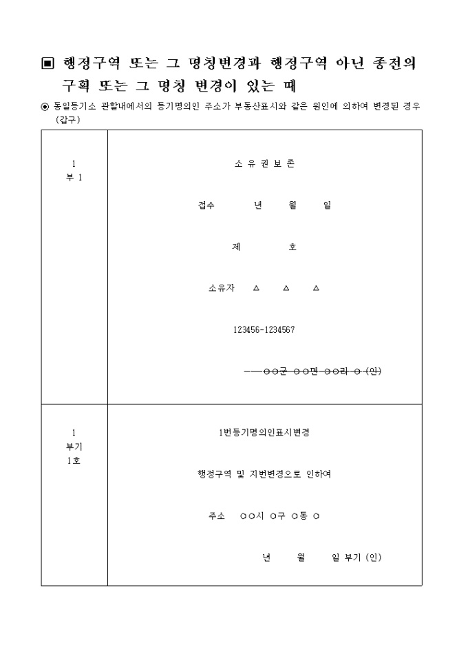 행정구역 및 지번변경으로 인하여