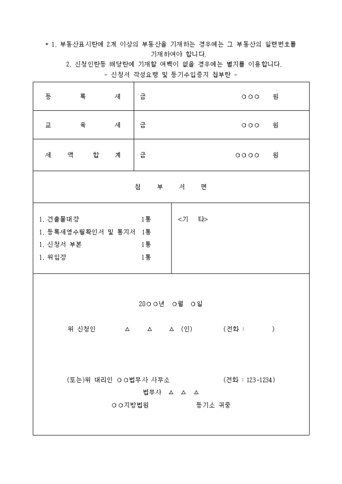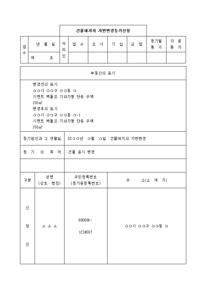 건물대지의 지번변경등기신청서