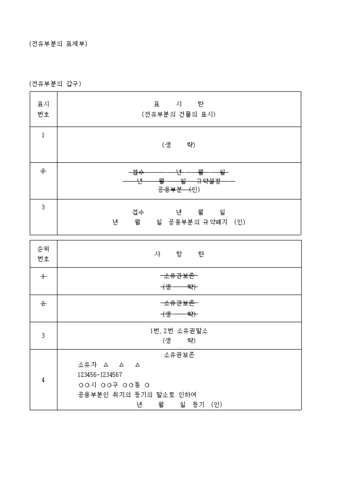 공용부분인 취지의 등기말소등기신청서(절단용)