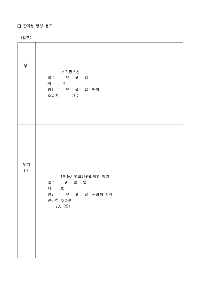 9,000원/월관리청 명칭 첨기 입니다. 소유권보존 접수 년 월 일 제 호 원인 년 월 일 매매 소유자 (인) ...