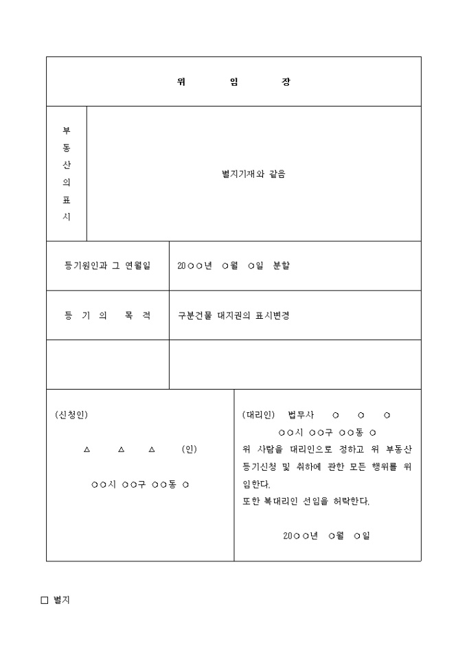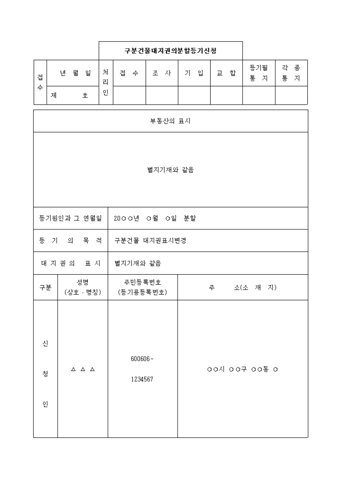 구분건물대지권의 분할등기신청서