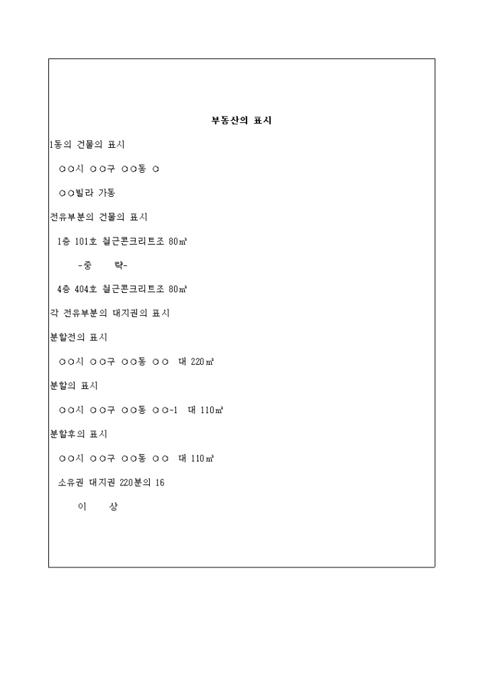 구분건물대지권의 분할등기신청서 입니다.