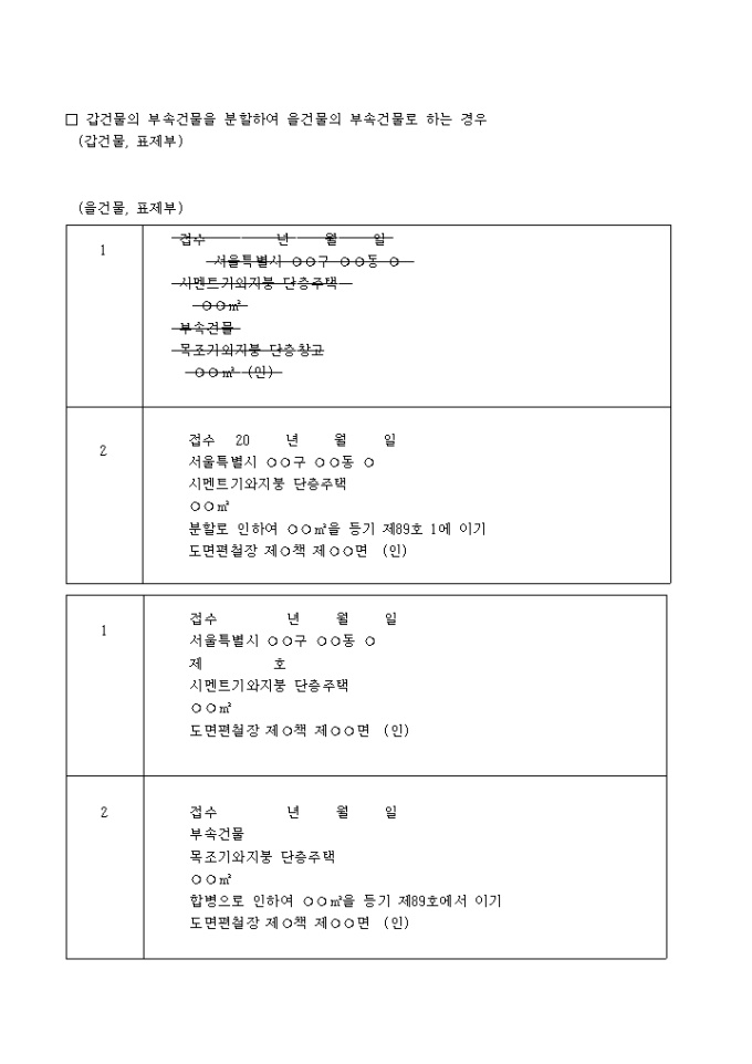 □ 갑건물의 부속건물을 분할하여 을건물의 부속건물로 하는 경우