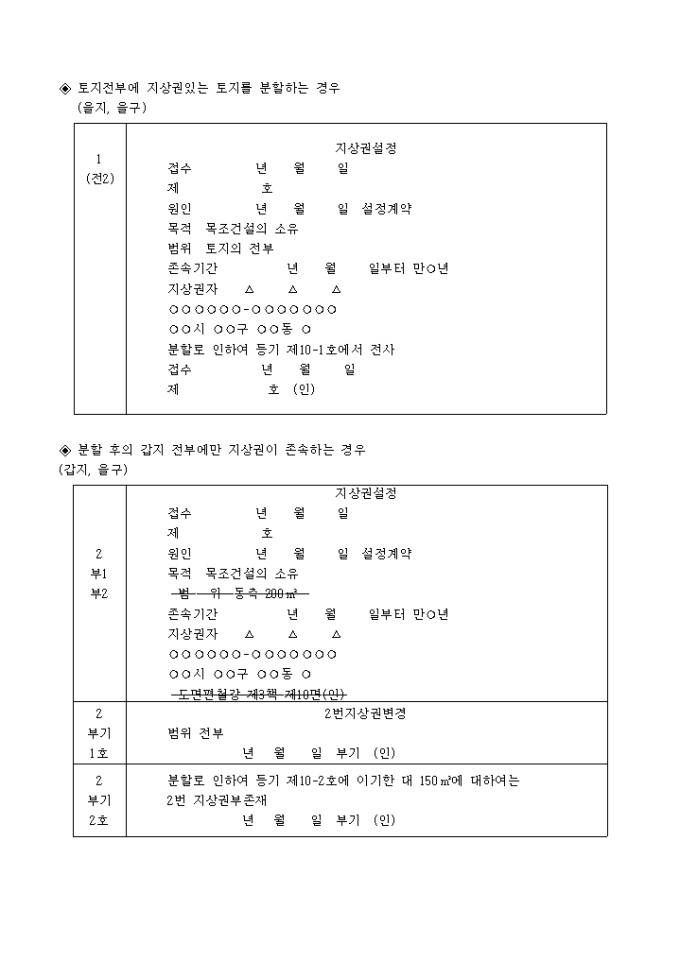토지전부에 지상권있는 토지를 분할하는 경우 입니다.