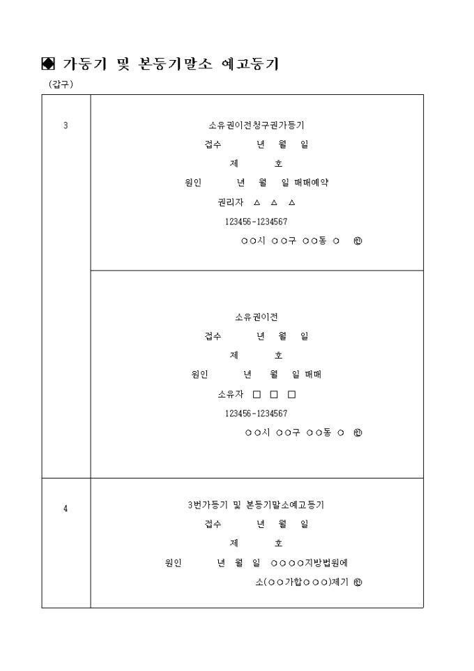 3번가등기 및 본등기말소예고등기