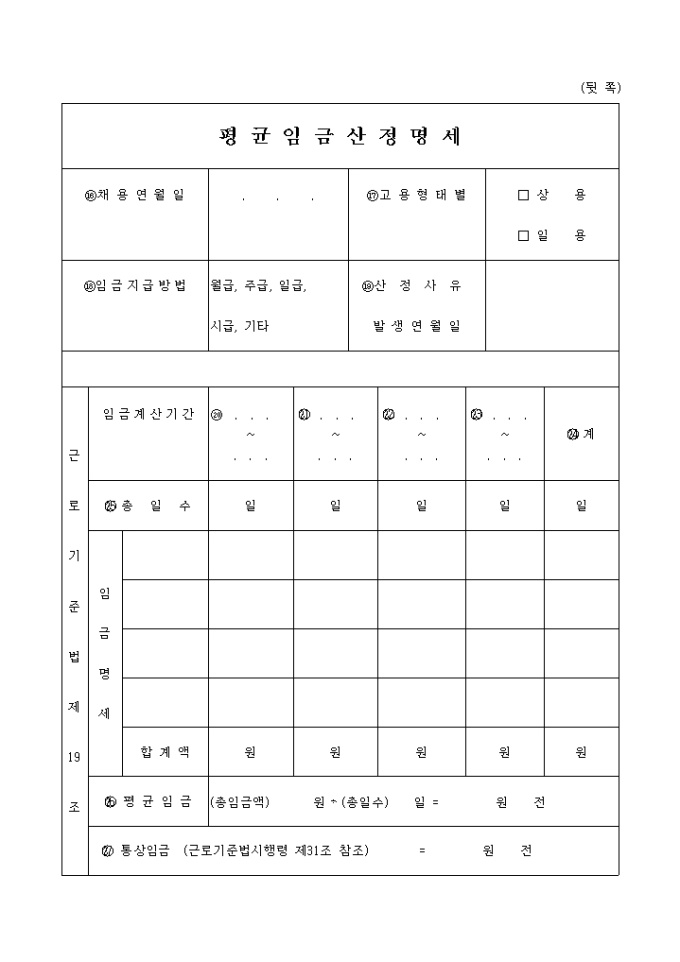 작업전환수당 지급신청서