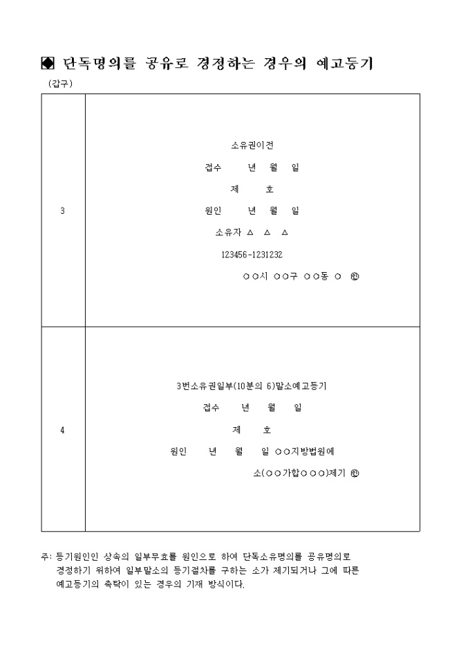 9,000원/월단독명의를 공유로 경정하는 경우의 예고등기 입니다.