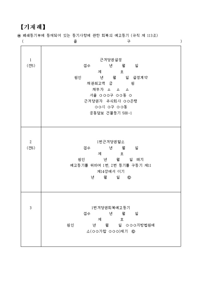 9,000원/월폐쇄등기부에 등재되어 있는 등기사항에 관한 회복의 예고등기(규칙 제113조) 입니다.