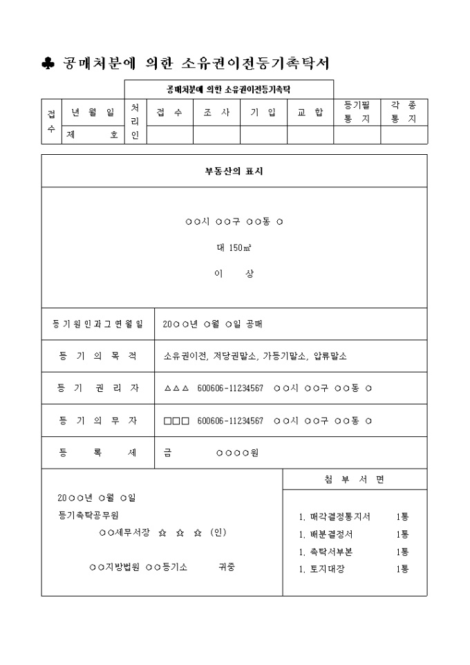 9,000원/월공매처분에 의한 소유권이전등기촉탁서 입니다.