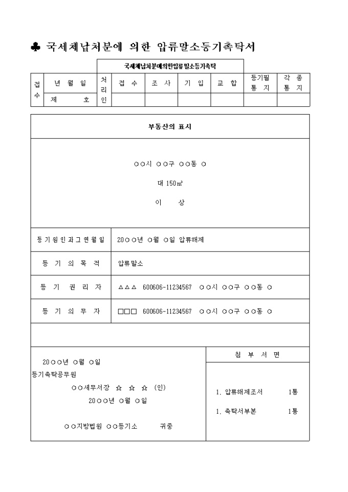 9,000원/월국세체납처분에 의한 압류말소등기촉탁서 입니다.