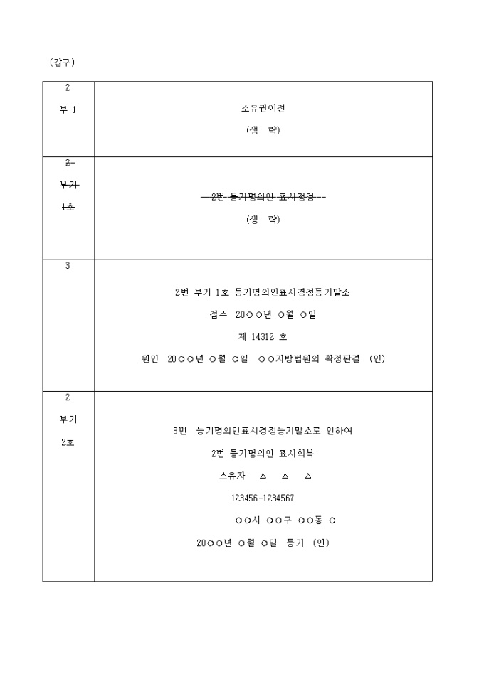 2번 부기 1호 등기명의인표시경정등기말소