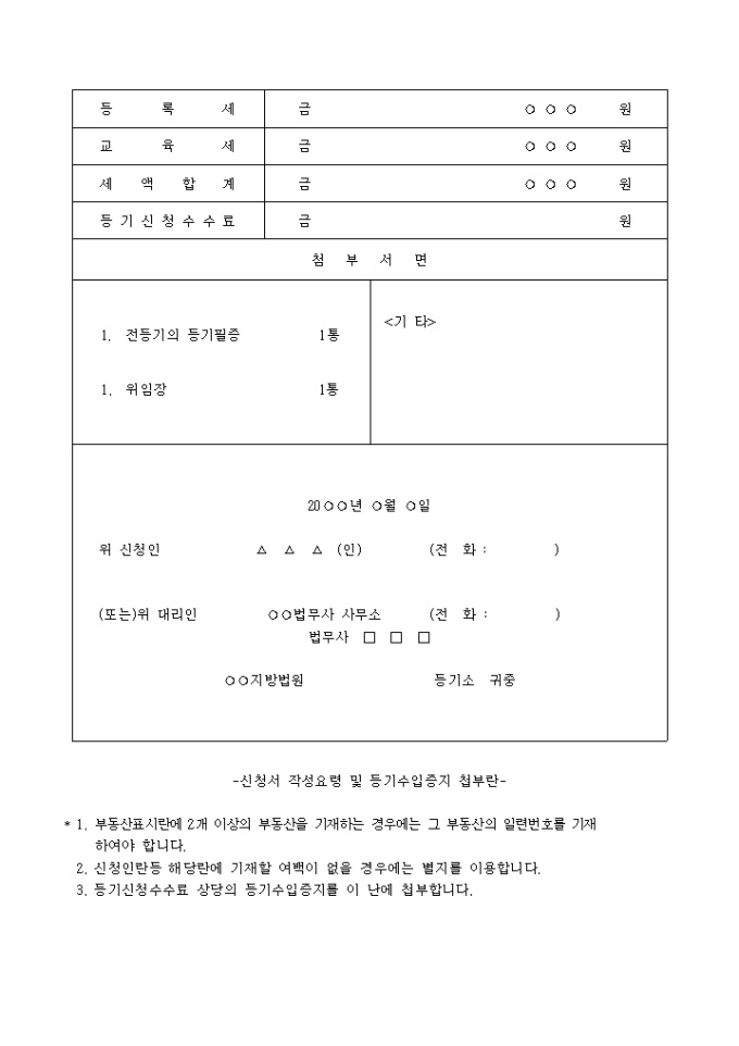1. 전등기의 등기필증 1통