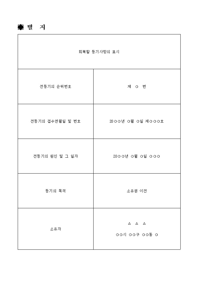 소유권이전등기의 멸실회복등기신청서