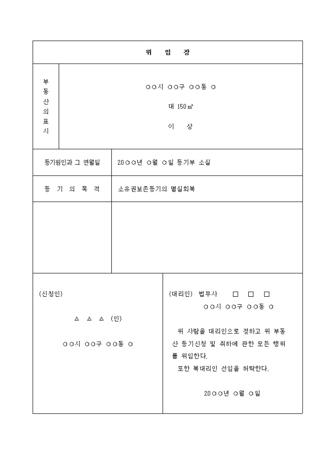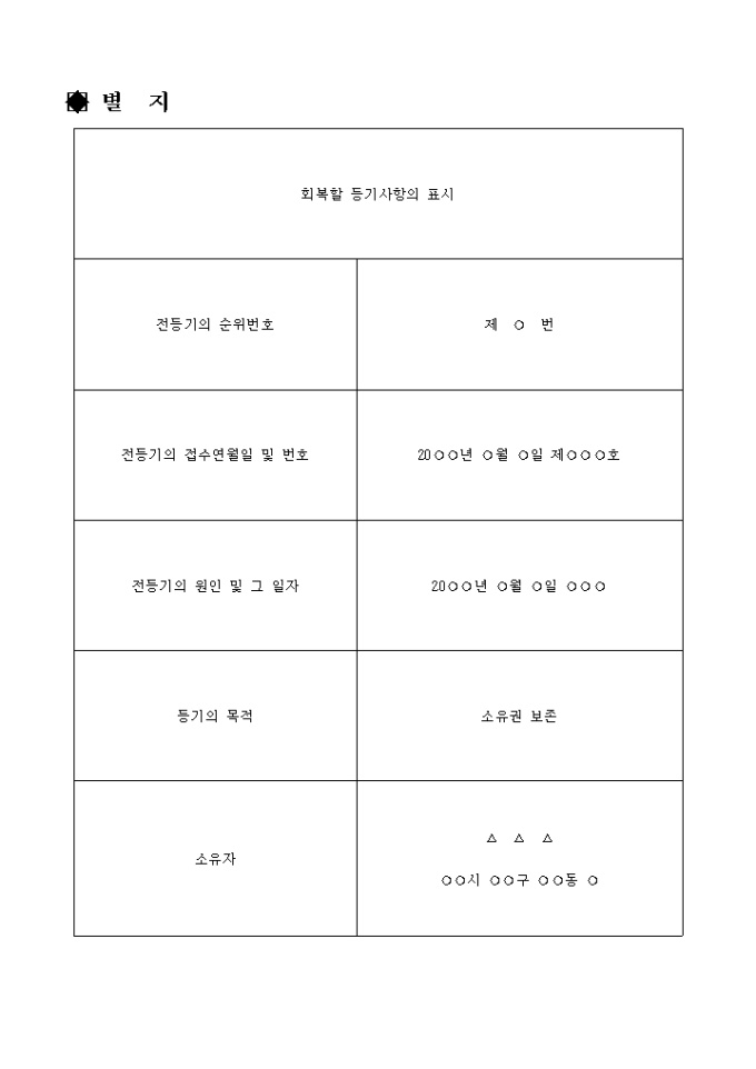 9,000원/월토지소유권보존등기의 멸실회복등기신청서 입니다.