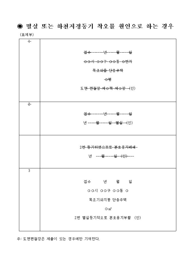 9,000원/월회복등기 기간중의 신등기 기재(멸실 또는 하천지정등기 착오를 원인으로 하는 경우) 입니다.