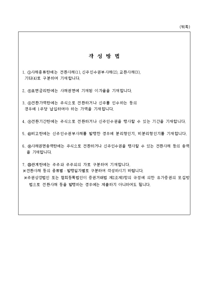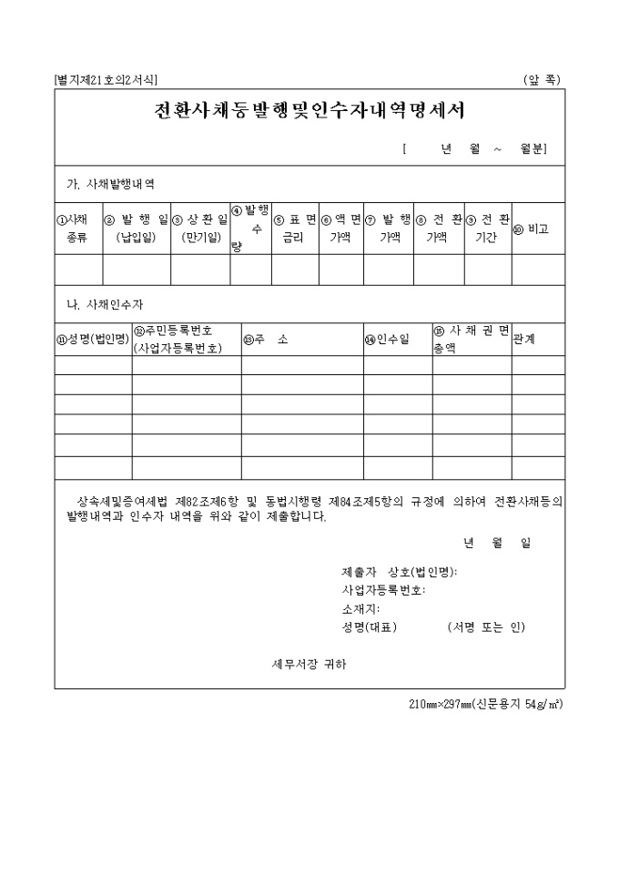 상속세 및 증여세법 제21호의2 전환사채등발행 및 인수자내역명세서