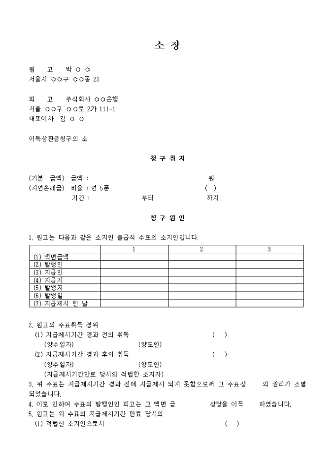9,000원/월이득상환금청구의 소 청 구 취 지 (기본 금액) 금액 : 원 (지연손해금) 비율 : 연 5푼 ( ) 기간 : 부터 까지