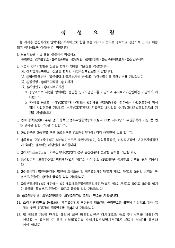 본 서식은 전산처리로 입력되는 서식이므로 한글 또는 아라비아숫자로 정확하고 선명하게 그리고 훼손되지 아니하도록 작성하시기 바랍니다.