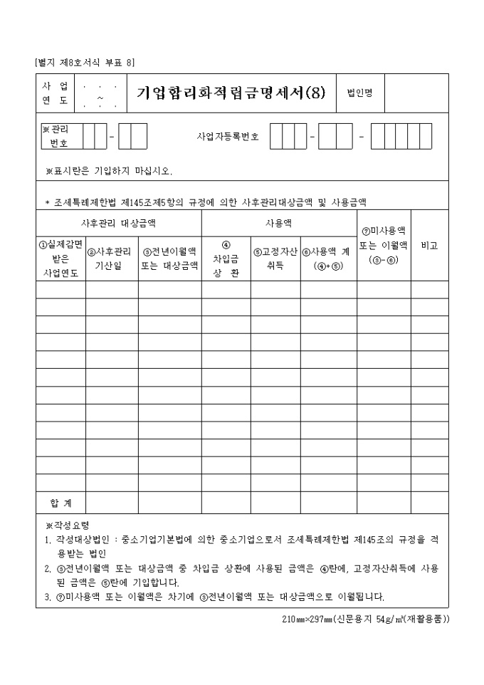기업합리화적립금명세서(8) 양식입니다.