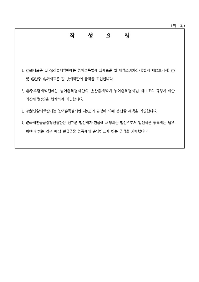농어촌특별세법 제7조의 규정에 의하여 위와 같이 신고하실때 사용하는 양식입니다.