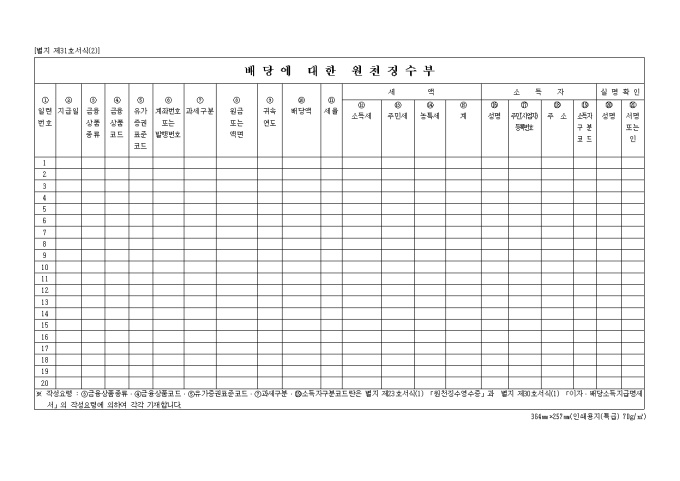 9,000원/월배당에대한원천징수부 별지 제31호서식 입니다.
