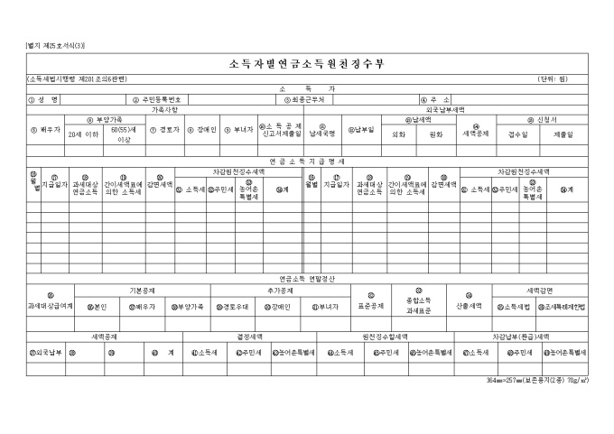 소득자별연금소득원천징수부 양식입니다.