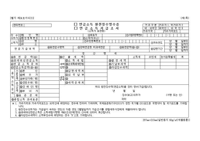 원천징수액(연금소득)을 정히 영수(지급)하실때 사용하는 양식입니다.
