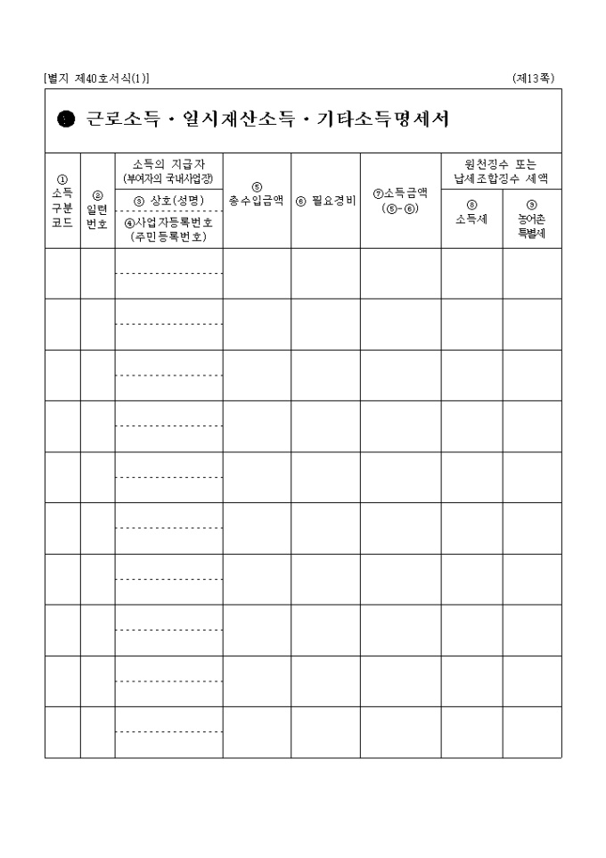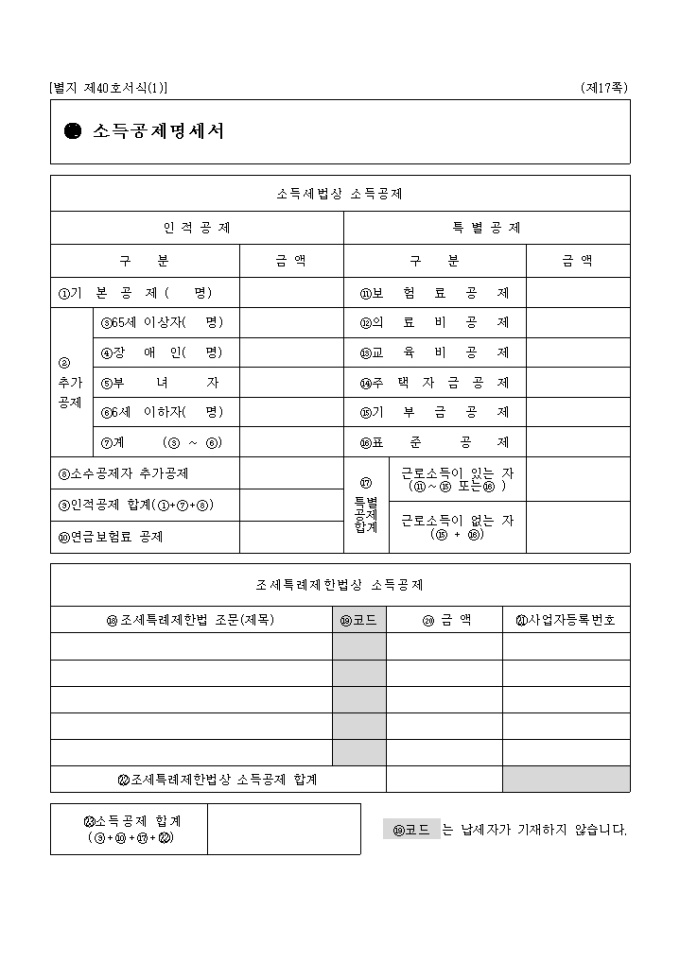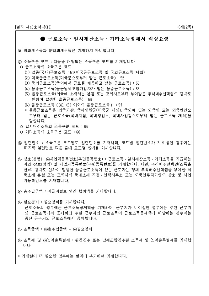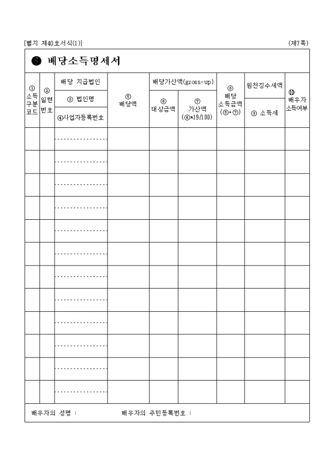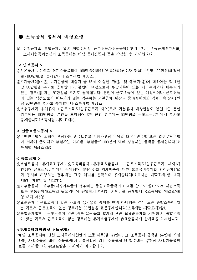 ※ 소득세법 및 조세특례제한법의 규정에 의한 비과세 및 분리과세 이자소득은 작성대상에서 제외되며, 부부합산금융소득(이자·배당소득)이 4천만원 이하로서 종합과세(비영업대금의 이익, 국외에서 받는 이자소득으로서 소득세법 제127조의 규정에 의하여 원천징수되지 아니한 이자소득)되는 소득이 없는 경우에는 작성하지 아니합니다.