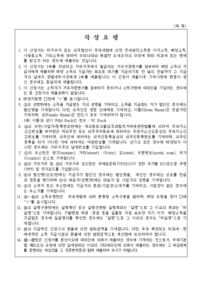 이자소득에대하여조세조약에따른법인세비과세면제신청서 양식입니다.
