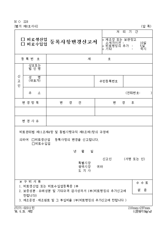 (비료생산업, 비료수입업)등록사항변경신고서