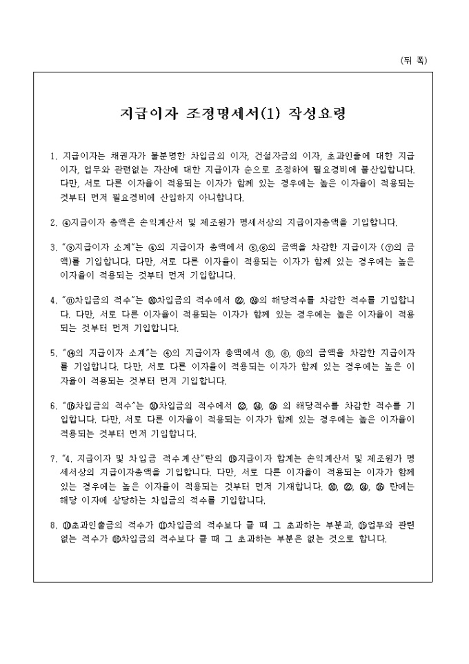 [지급이자 조정명세서(1) 작성요령]