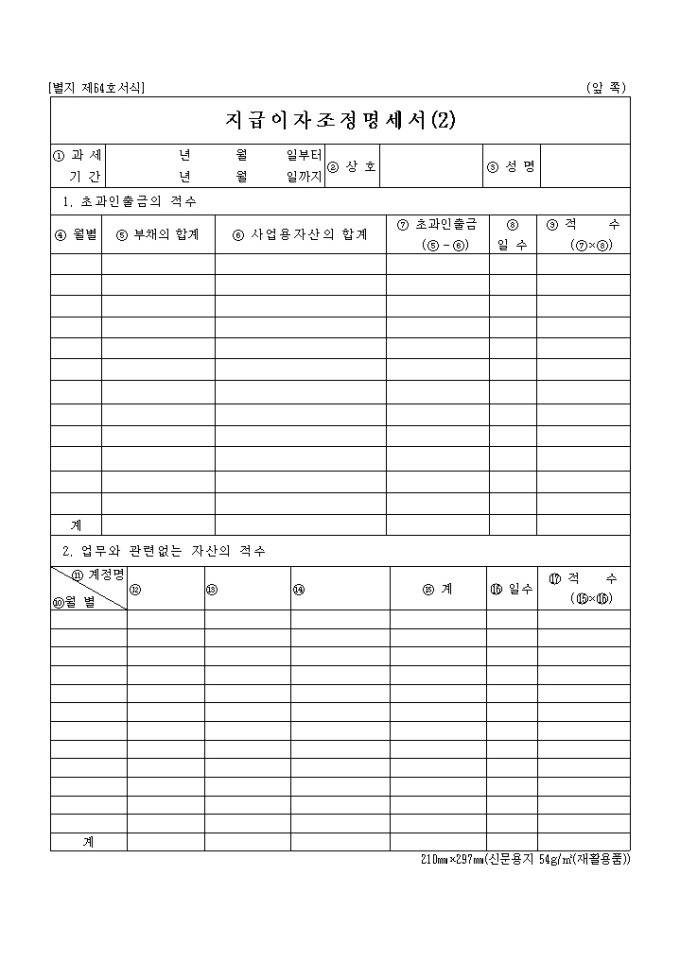 지급이자조정명세서(1)(2)별지 제64호서식