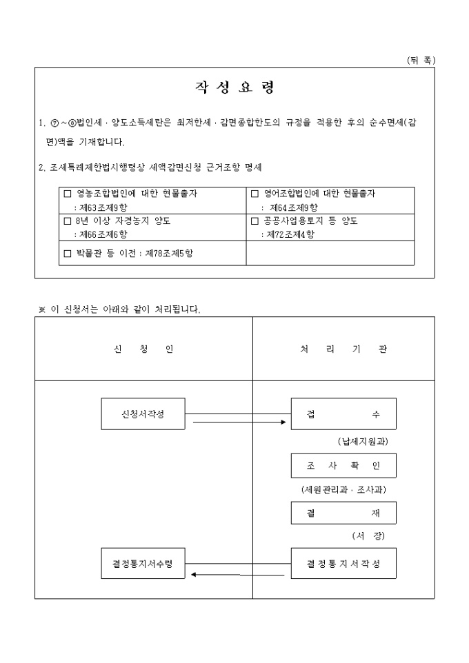 조세특례제한법시행령 제( )조제( )항의 규정에 의하여 세액감면(면제)을 신청하실때 사용하는 양식입니다.