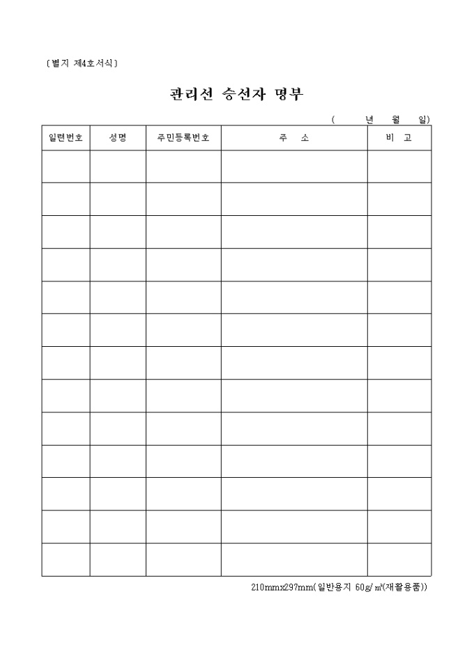 9,000원/월별지제4호 관리선 승선자명부 양식입니다.