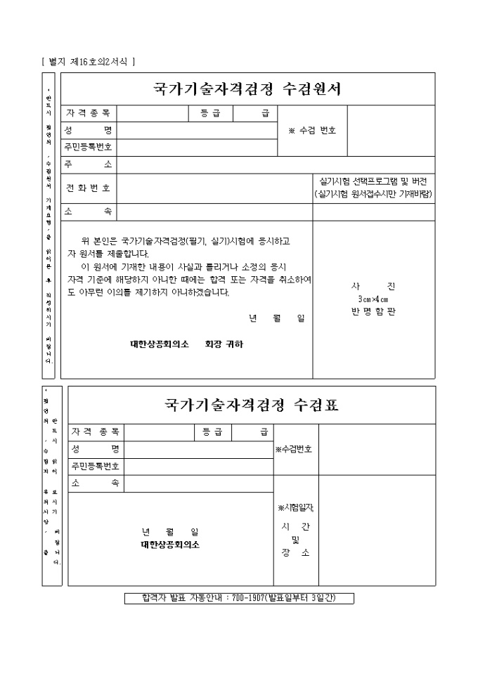 9,000원/월별지제16호의2 국가기술 자격검정 수검원서 양식입니다.
