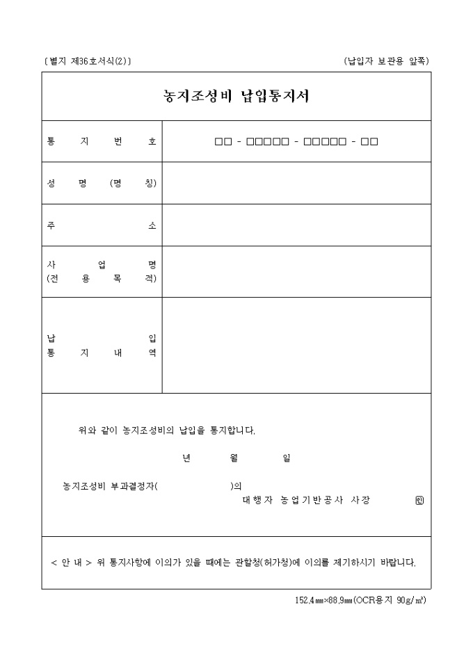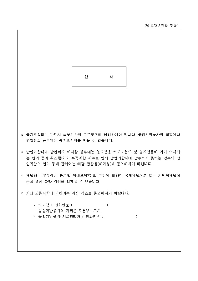9,000원/월별지제36호 농지조성비 납입통지서 양식입니다.