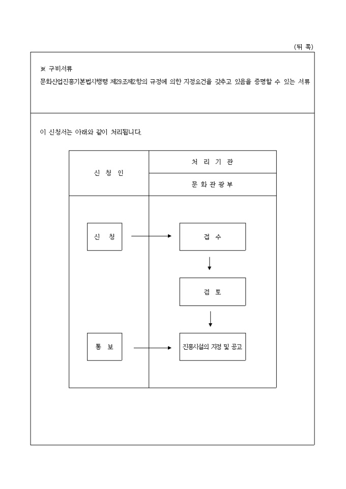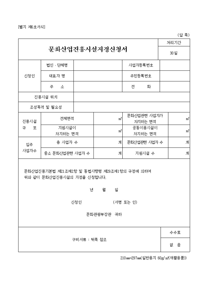 문화산업진흥시설지정신청서(별지 제6호)