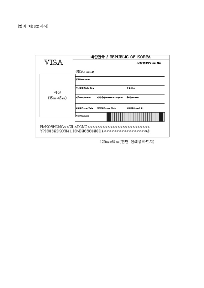 사진(35㎜×45㎜), 명/Given name, 생년월일/Birth Date, 성별/Sex,