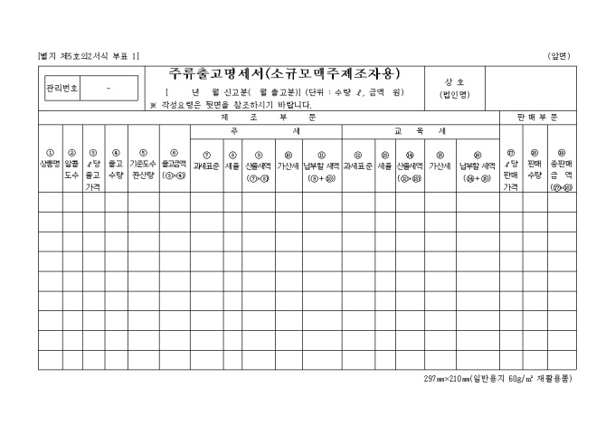 9,000원/월별지 제5호의2 주류 출고명세서(소규모 맥주제조자용) 양식 예제입니다.
