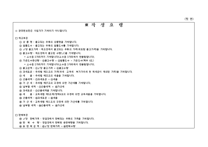 ⑦ 과세표준 : 주세법 제21조의 가격(주세․교육세․부가가치세 등 제세금이 제외된 가격)을 기재합니다.