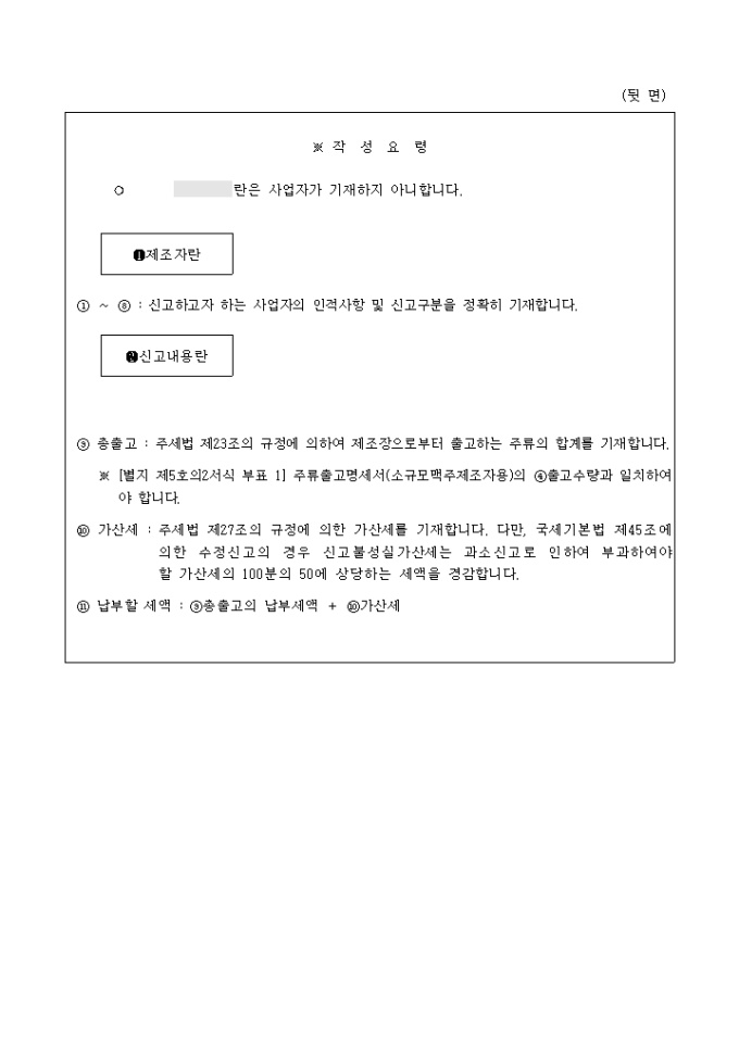 주세법 제23조 및 동법시행령 제23조의 규정에 의하여 위와 같이 신고합니다.