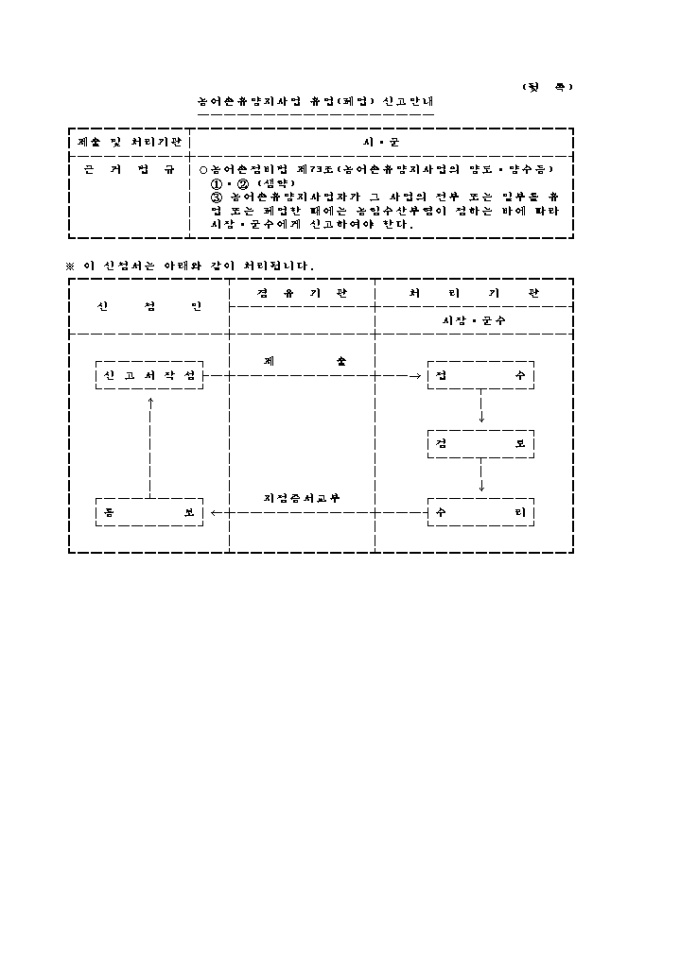 9,000원/월농어촌정비법 제73조제3항의 규정에 의하여 농어촌 휴양지사업의 휴업(폐업)을 신고하고자 할 때 쓰이는 "농어촌 휴양지 사업(휴업,폐업) 신고안내" 양식입니다.