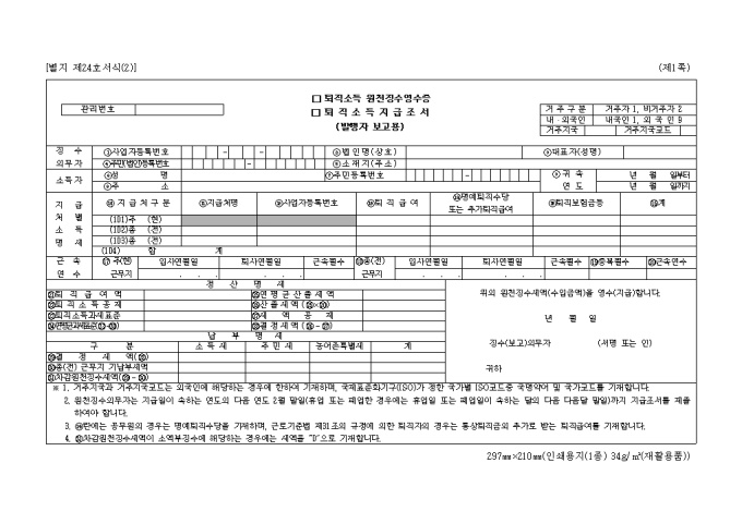 9,000원/월퇴직 소득 원천 징수 영수증, 퇴직 소득 지급조서(발행자보고용) 양식 예제입니다.