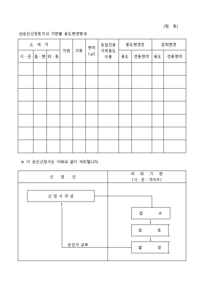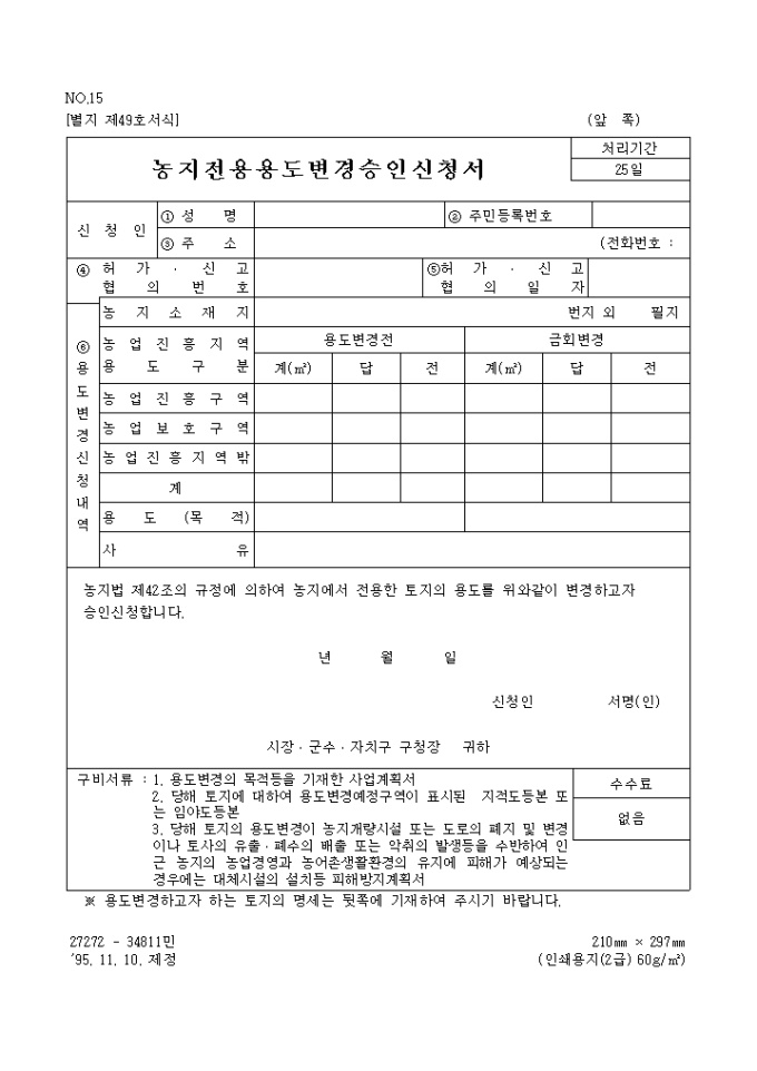 농지전용 용도 변경 승인신청서