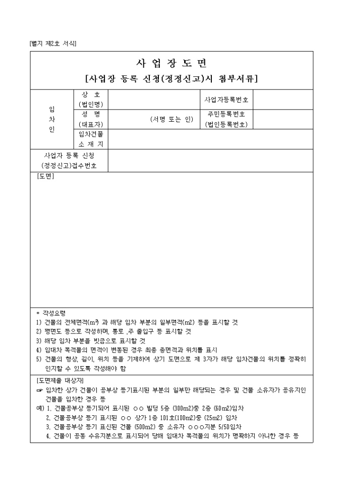 9,000원/월사업장 도면(사업장 등록 신청(정정신고)시 첨부서류) 양식입니다.