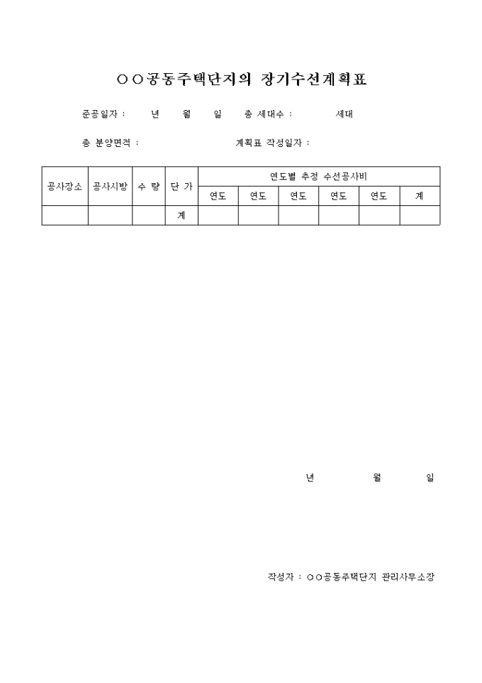 장기수선 계획표(공동주택단지)