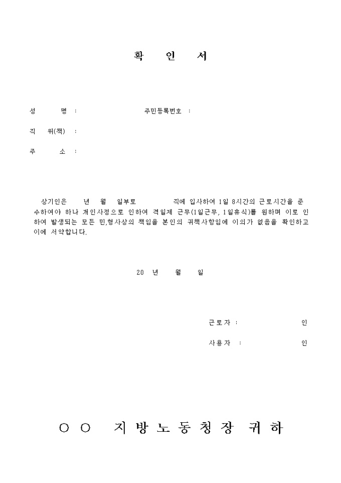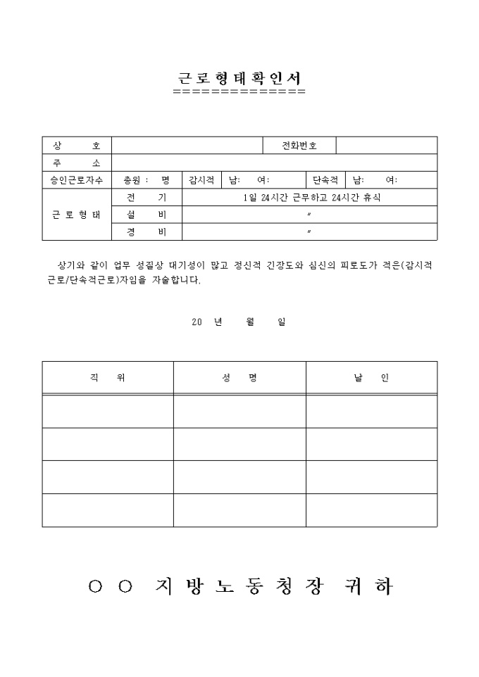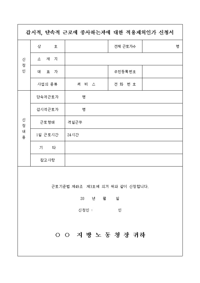 감시적,단속적근로에종사하는자에대한적용제외인가신청 입니다.